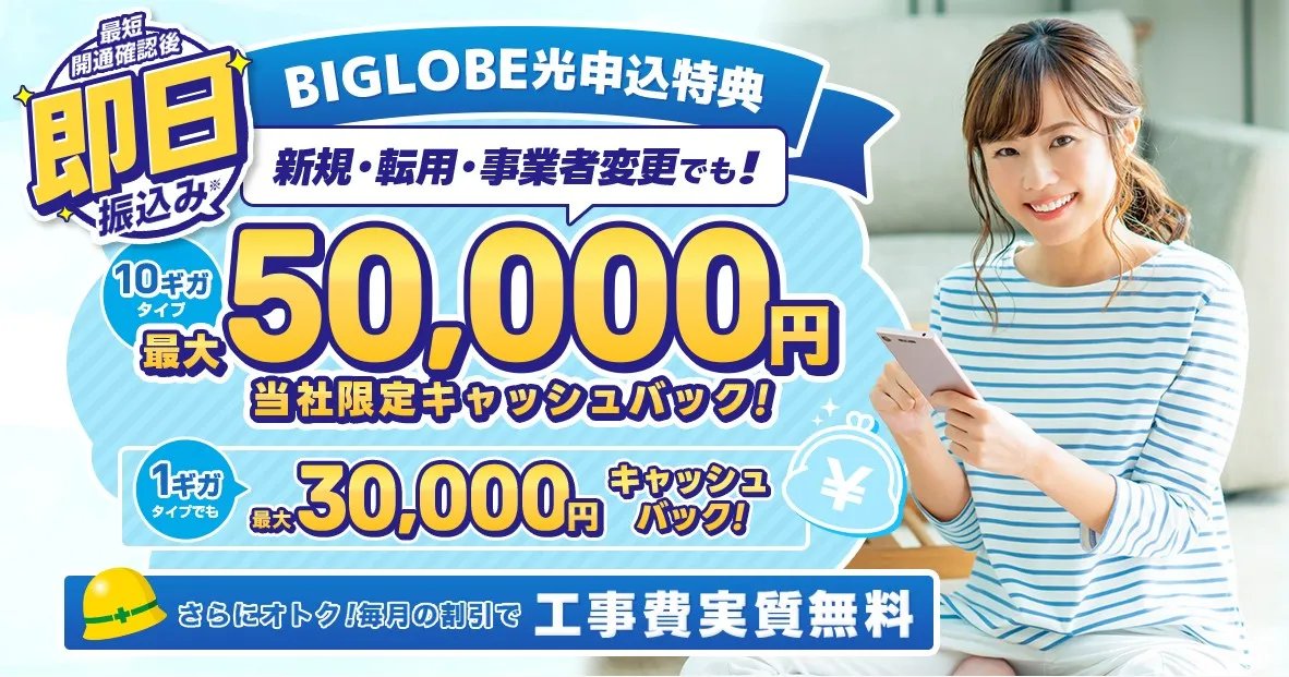 即日最大50,000円キャッシュバック